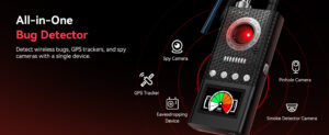 4-in-1 Versatile Detection: This all-in-one hidden bug detector identifies hidden cameras, GPS trackers, listening devices, wireless bugs, and magnetic fields with one device. Stay protected across hotel rooms, rentals, offices, or vehicles
