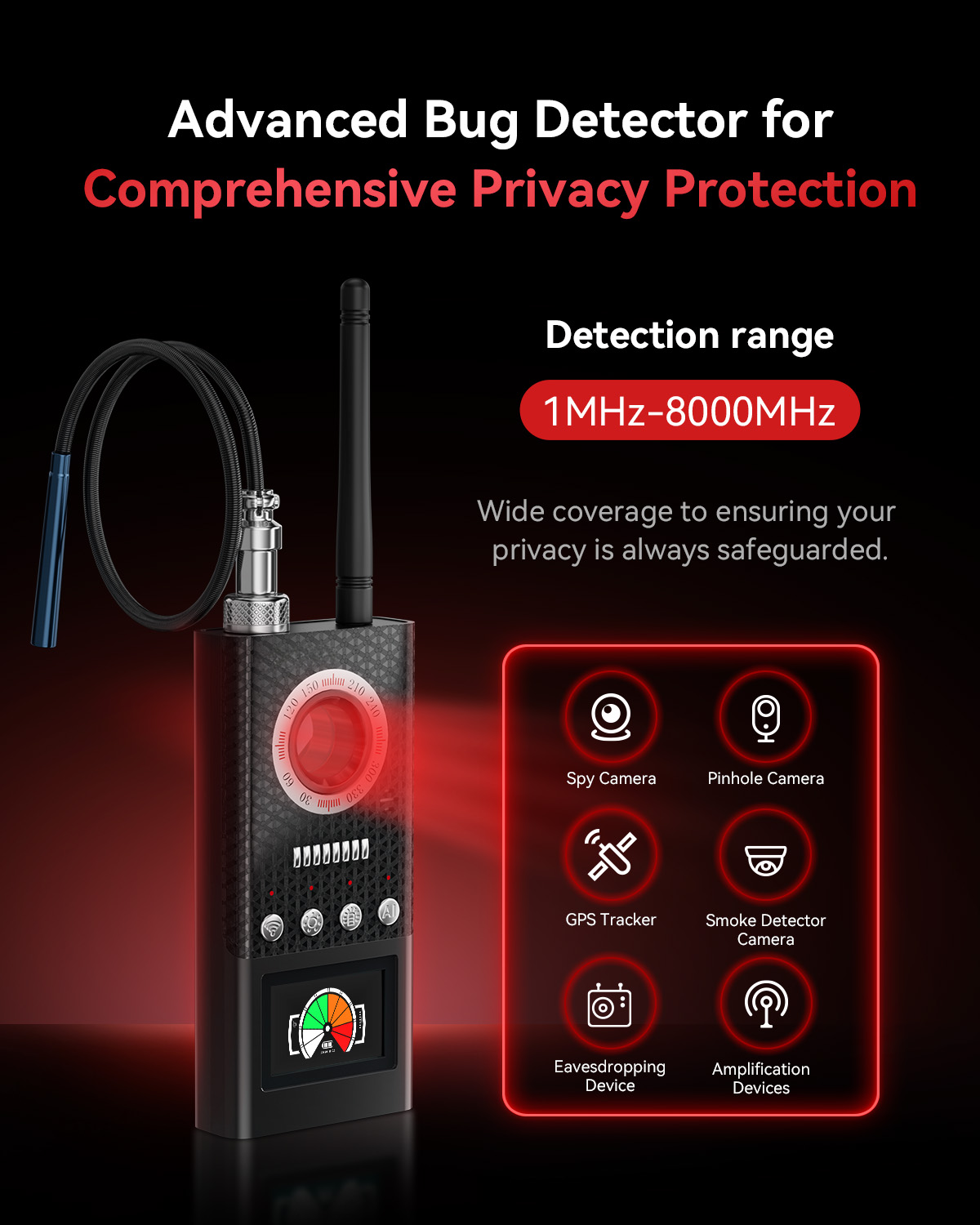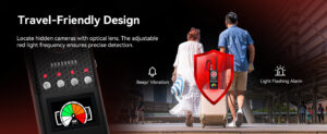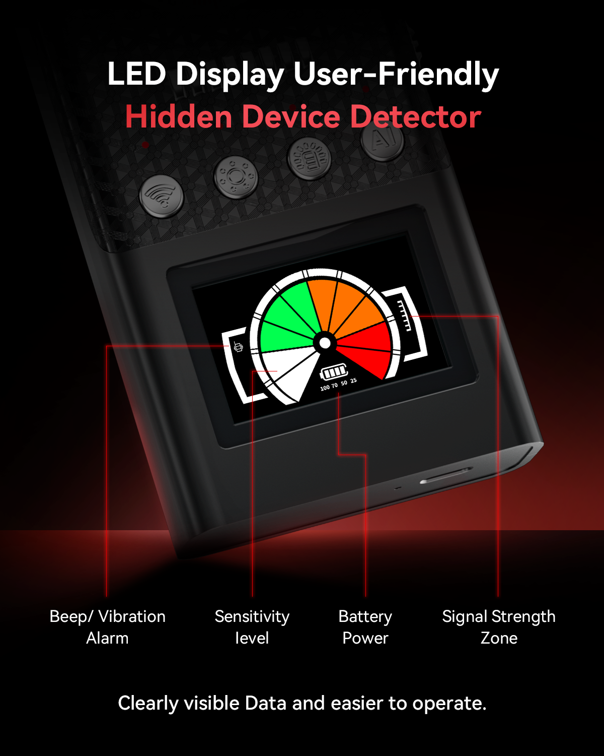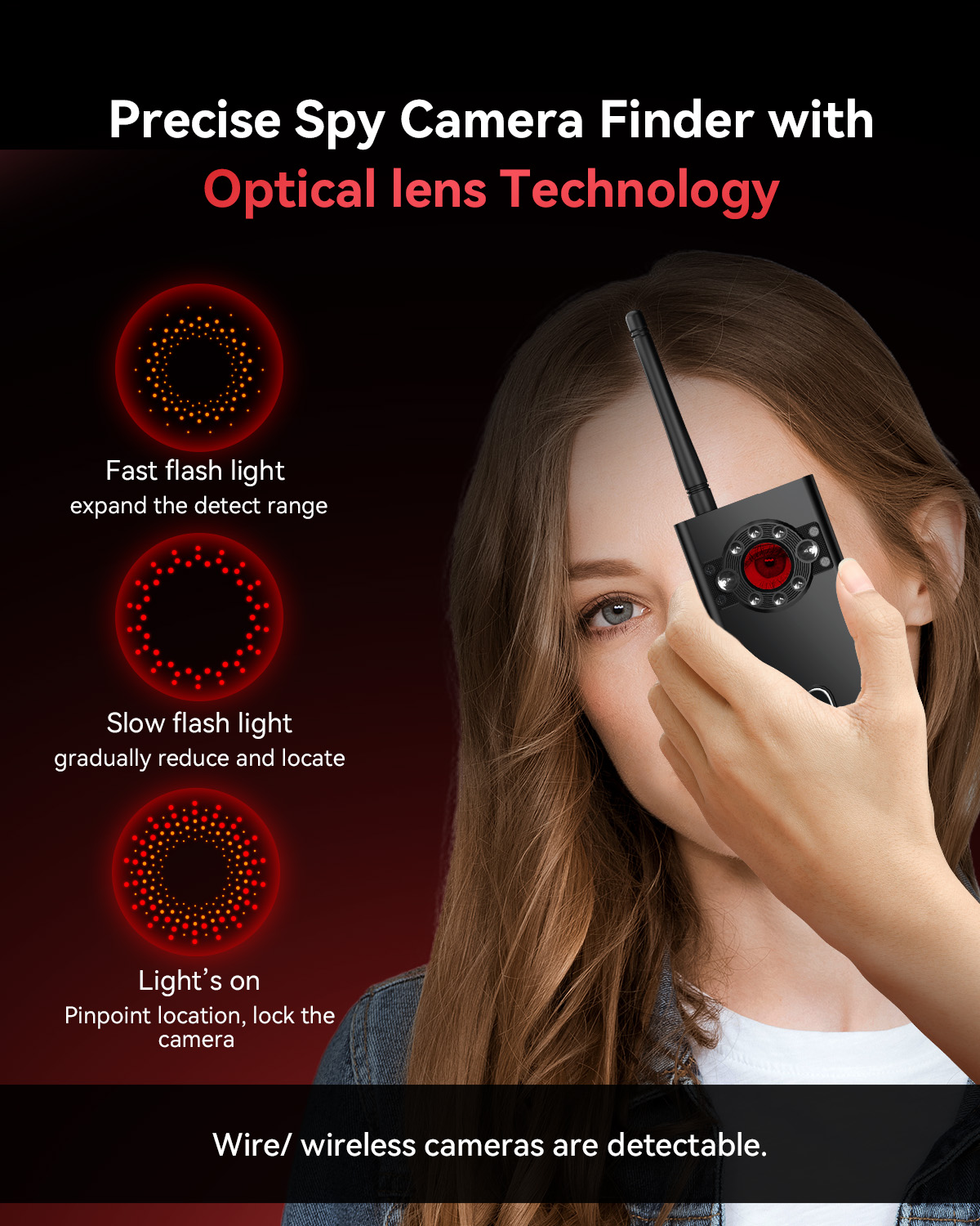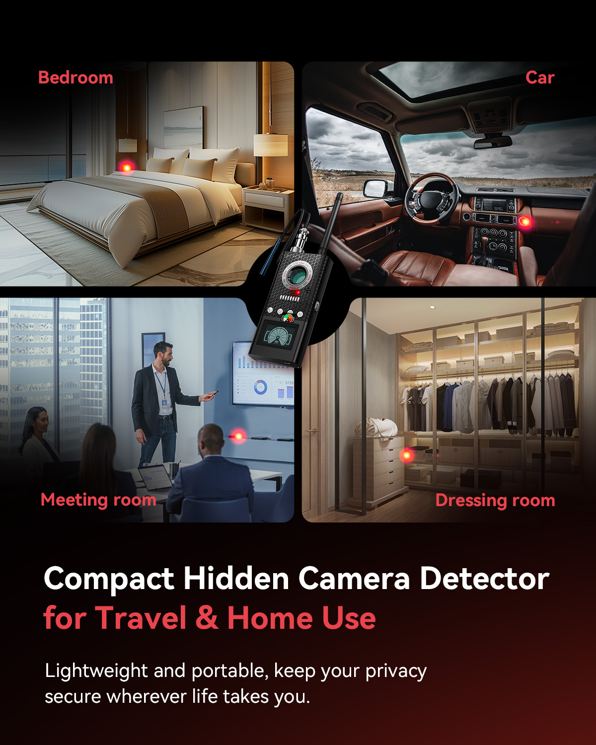 Adjustable Sensitivity: Start detection with max range, then adjust sensitivity to isolate the signal source of the spy devices. Great for both wide sweeps and pinpoint precision, quickly locate the hidden cameras, excellent hotel security for travelers