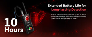 Rechargeable & Pocket-Sized: Comes with a USB rechargeable battery lasting up to 10 hours. Designed for portability, making it your reliable bug sweeper detector for everyday or business travel, a must-have travel gadget